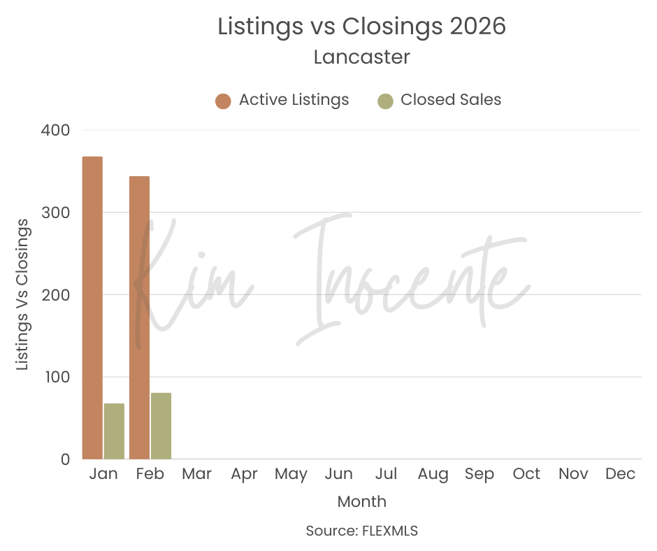 In February, Lancaster had less active inventory but more closed sales. This drop in inventory gives sellers a bit more of an advantage, likely contributing to the shorter days on market we saw in that part of the valley.